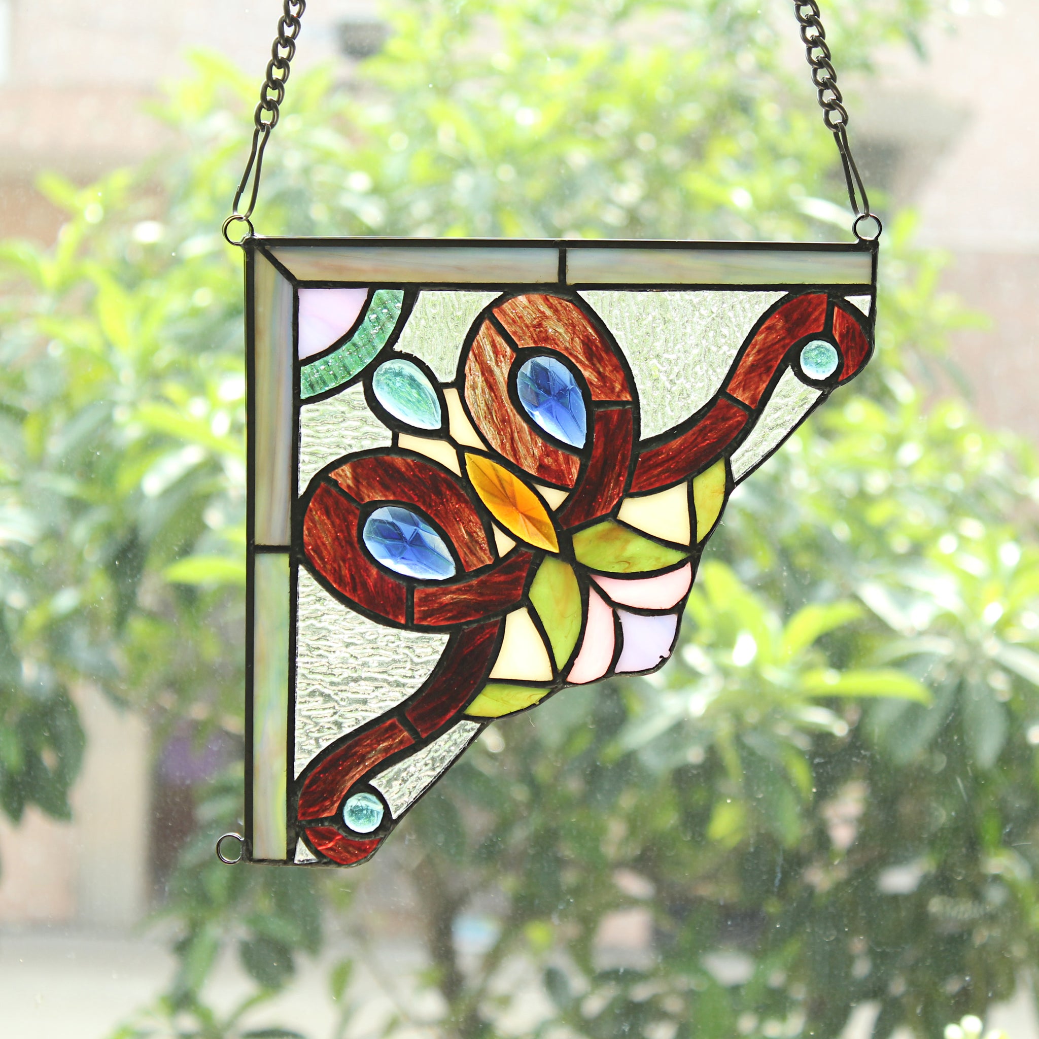 This is a pair of Victorian style stained glass window panels, featuring a gorgeous design with will bring beautiful colors into your home. Hand crafted from over 35 pieces of art glass, 2 glass beads and 4 crystals each. Main colors are rosy-pink and sky-blue. Handcrafted using the same techniques that were developed by Louis Comfort Tiffany in the early 1900s, these beautiful Tiffany-style pieces contain hand-cut pieces of stained glass, each wrapped in fine copper foil. Thank you for choosing Radiance Goods, proudly serving you from the US!