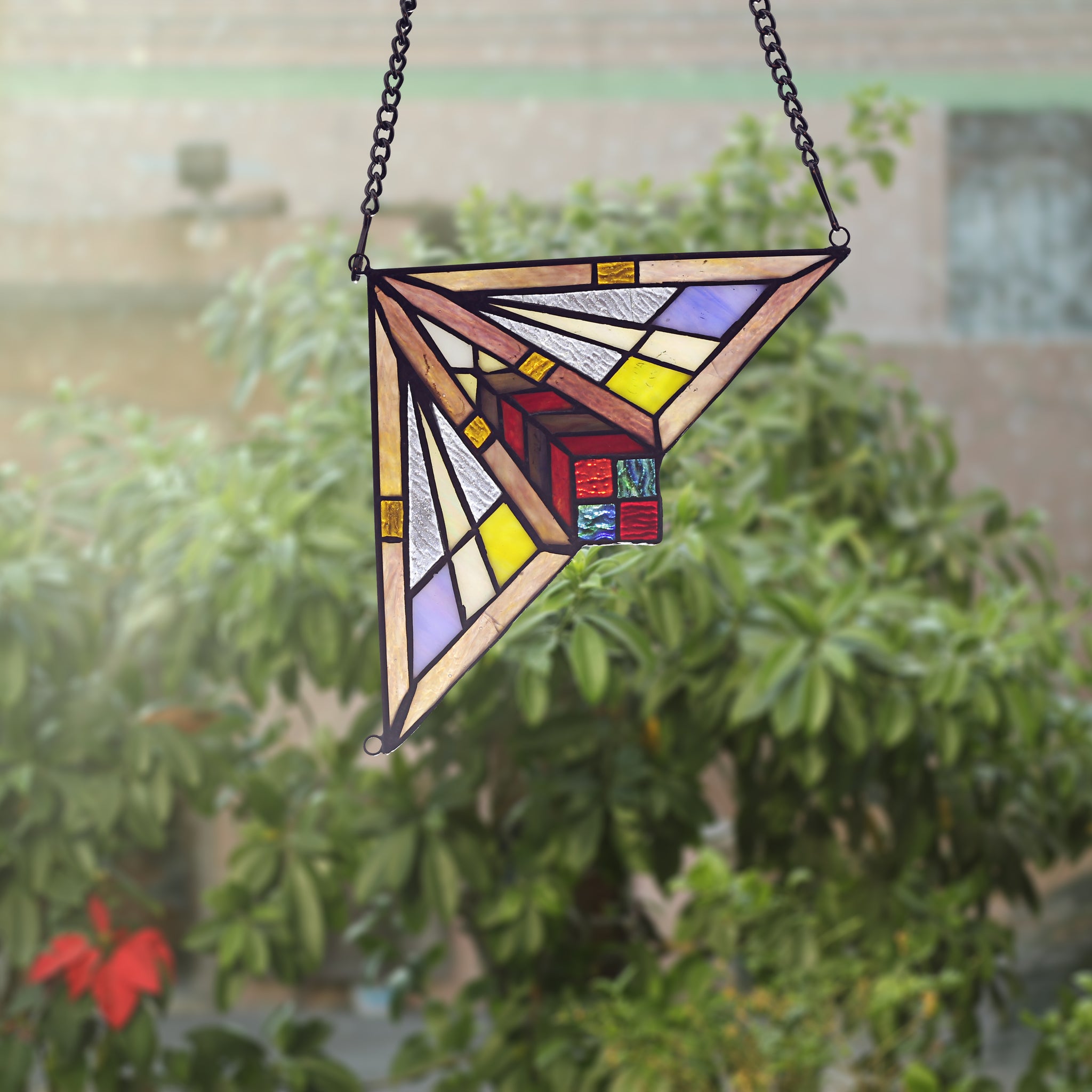 This Mission style stained glass window panel features a beautiful design that will compliment your home. Handcrafted from over 40 pieces of art glass. Main colors are yellow and red. Handcrafted using the same techniques that were developed by Louis Comfort Tiffany in the early 1900s, this beautiful Tiffany-style piece contains hand-cut pieces of stained glass, each wrapped in fine copper foil and soldered using high heat. Dry listed and recommended indoor use only. Thank you for choosing Radiance Goods, proudly serving you from the US!