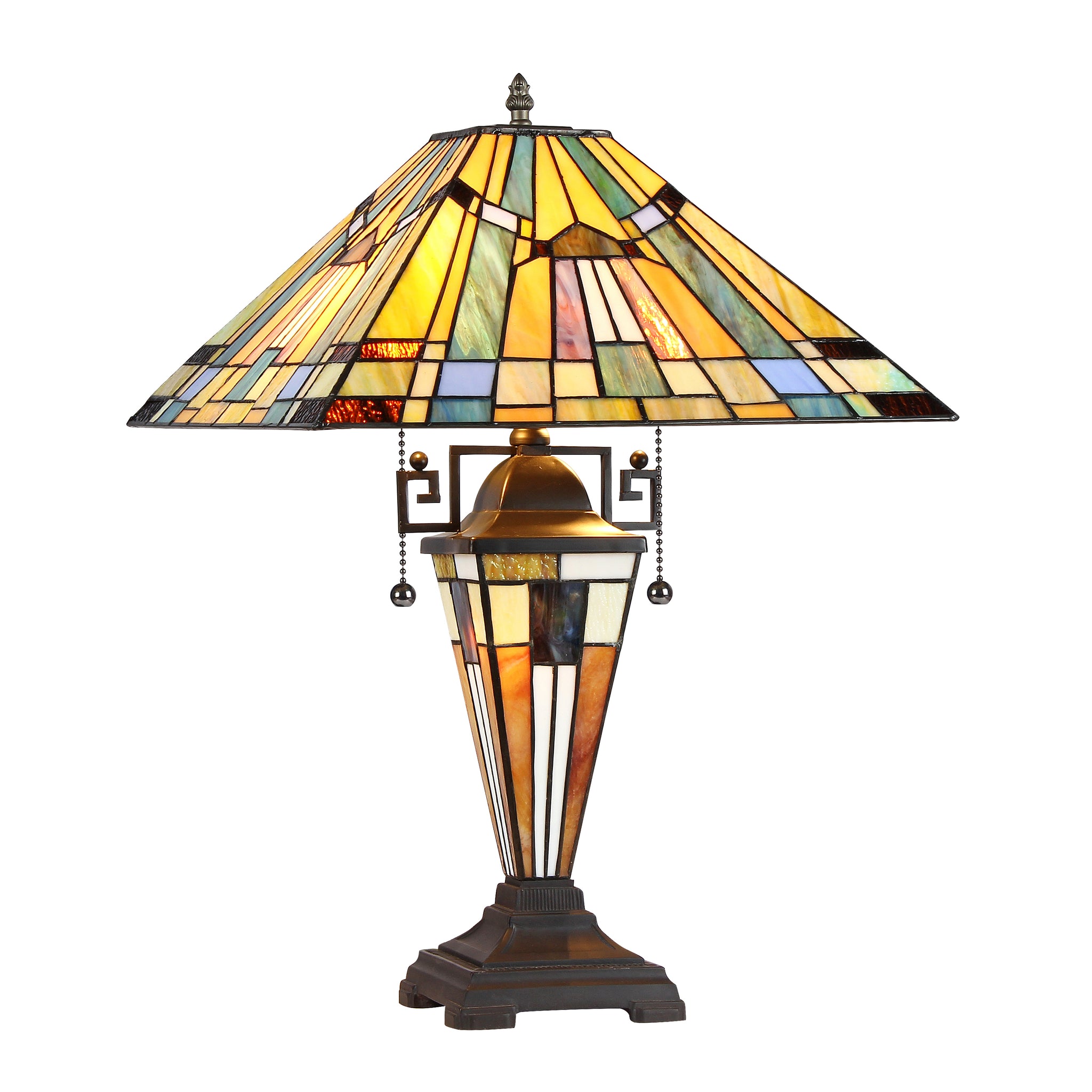 This Mission style 3-light with matching base table lamp features a blackish bronze finish that will complement many decors throughout your home. Handcrafted using the same techniques that were developed by Louis Comfort Tiffany in the early 1900s, this beautiful Tiffany-style piece contains hand-cut pieces of stained glass, each wrapped in fine copper foil and soldered using high heat. Dry listed and recommended indoor use only. Thank you for choosing Radiance Goods, proudly serving you from the US!