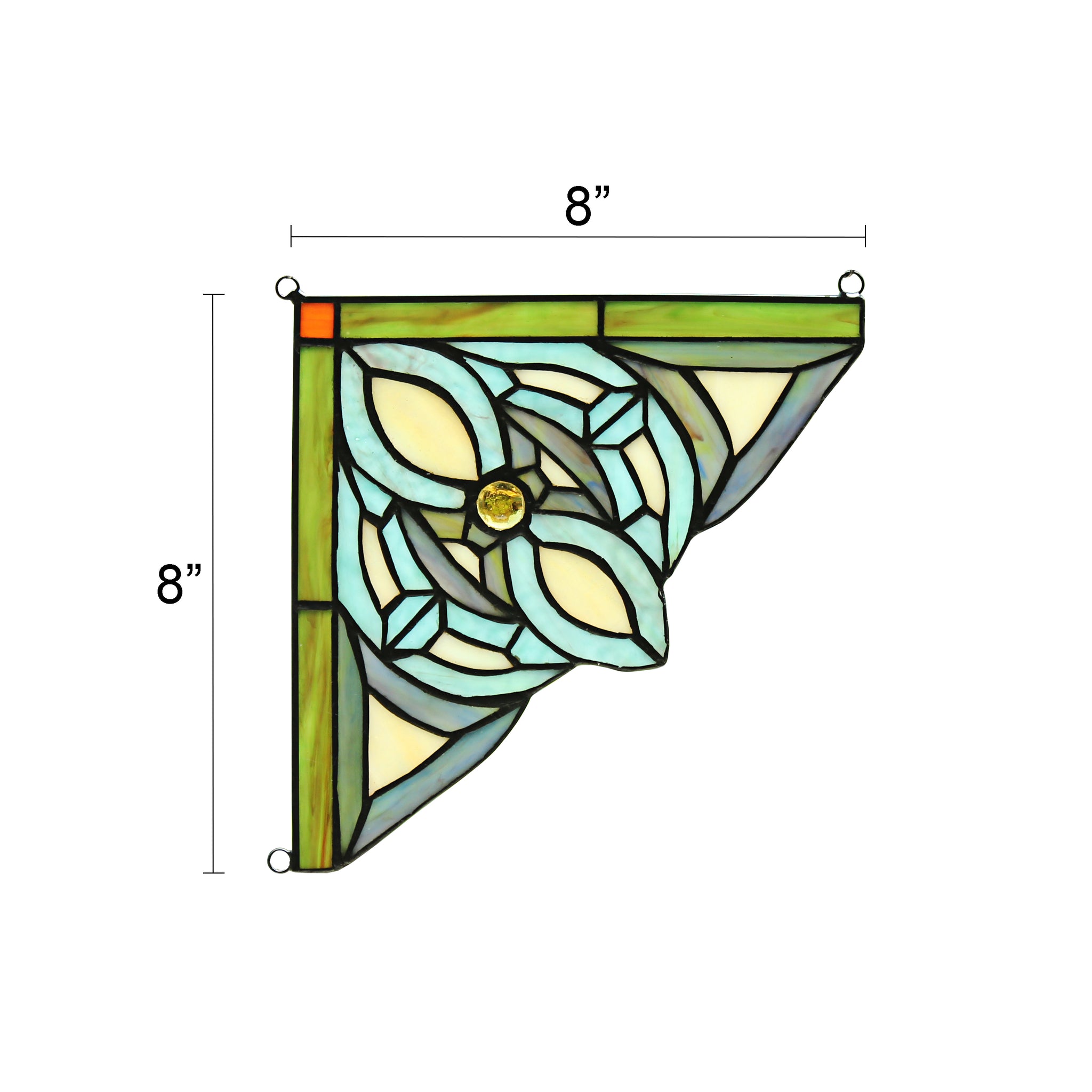This Victorian style stained glass window panel features an old-fashioned take with will compliment your home. Handcrafted from over 45 pieces of art glass and 1 glass bead. Main colors are green and yellow. Handcrafted using the same techniques that were developed by Louis Comfort Tiffany in the early 1900s, this beautiful Tiffany-style piece contains hand-cut pieces of stained glass, each wrapped in fine copper foil and soldered using high heat. Dry listed and recommended indoor use only. Thank you for choosing Radiance Goods, proudly serving you from the US!