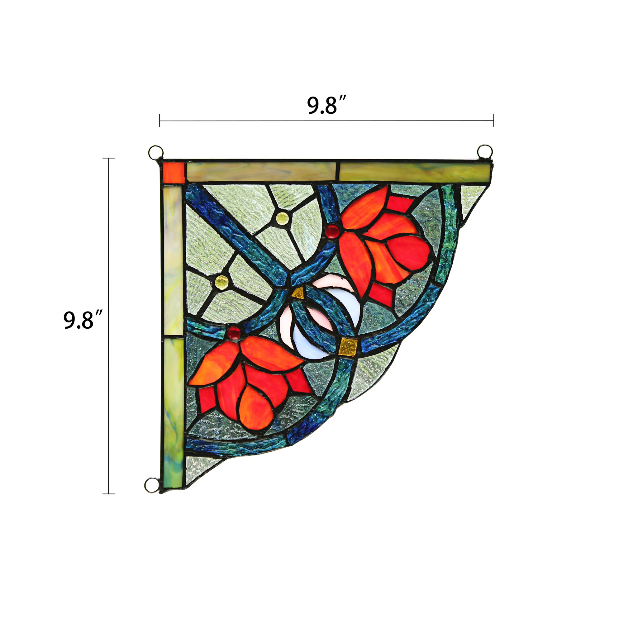 This Victorian style stained glass window panel features a beautiful design of two red roses. Handcrafted from 60 pieces of art glass and 4 glass beads. Main colors are red and blue. Handcrafted using the same techniques that were developed by Louis Comfort Tiffany in the early 1900s, this beautiful Tiffany-style piece contains hand-cut pieces of stained glass, each wrapped in fine copper foil and soldered using high heat. Dry listed and recommended indoor use only. Thank you for choosing Radiance Goods, proudly serving you from the US!